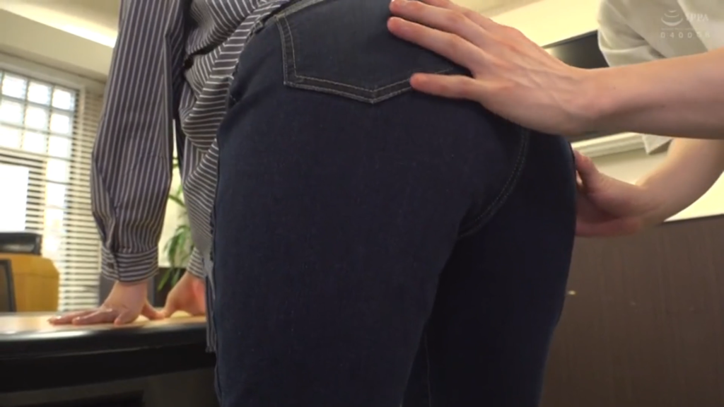 Gパンの上から尻揉み、尻撫で