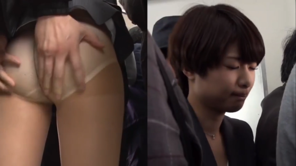 両手で尻揉み痴漢